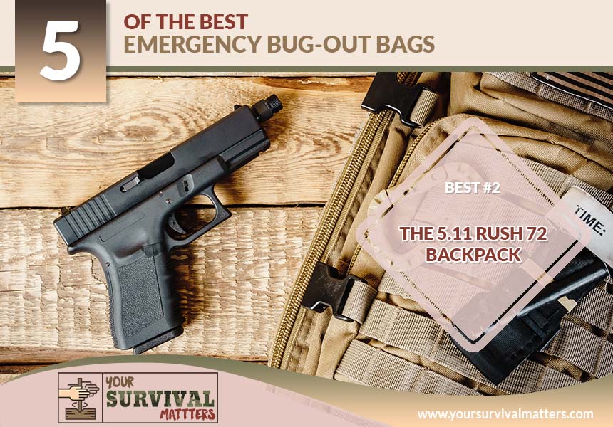 The 5.11 Rush 72 Back Pack is another excellent choice. With this water-resistant bag, you get plenty of space, and it's easy to keep items organized with all the pockets.